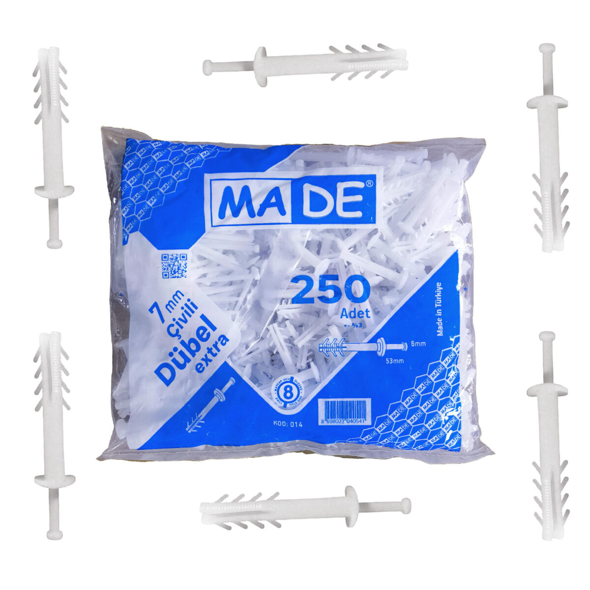 Made Plastik Çivili Dübel Korniş Dübeli 7mm (250 Adet)