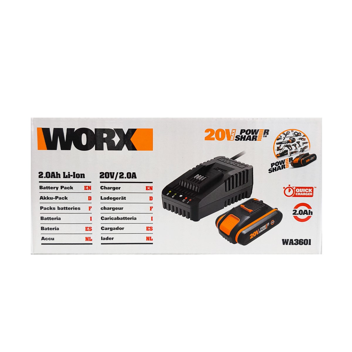 WORX WA3601 20Volt 2.0Ah. PowerShare Li-ion Akü ve Akü Şarj Cihazı
